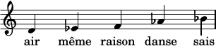 Le deuxième texte, intitulé Pain quotidien, me semblait assez bien tourné, à l’exception de la fin peut-être (de mémoire : "Mets tes mains sur mes miches / Je veux que tu les remoules / Façon Wonderbra" — euh, plaît-il ?). Les couplets énuméraient des jours de la semaine et j’avais commencé à travailler autour d’un pentacorde descendant avec permutation systématique des intervalles — de bien grands mots si l’on en juge par la simplicité du résultat :