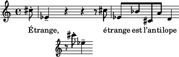 Les hauteurs sont choisies de façon à pouvoir s’adapter aussi bien (c’est-à-dire aussi mal) à un contexte en Ré mineur qu’en Mi bémol mineur — moyennant parfois un peu de ce que je nommais plus haut la "bonne volonté de l’oreille". Enfin, l’écriture rythmique met en avant des anticipations et contretemps, pour tenter de compenser l’austérité du langage employé par un aspect très syncopé et dansé. Le rythme se calme sur la dernière strophe, avec un phrasé plus legato.