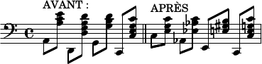 C’est donc, motif essentiel à l’Oumupo et sur lequel nous reviendrons plus bas, qu’il faut compter sur la bonne volonté de l’oreille. De même que l’être humain persiste à voir des objets et des êtres dans la forme des nuages, notre cortex auditif passe son temps à tenter de faire sens des sons auxquels il est exposé — l’on sait ainsi, depuis Chabrier, qu’il est possible de terminer une gamme descendante en pizz. de contrebasse, par un coup de grosse caisse :