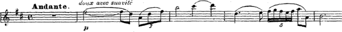 - À l’origine par exemple, la deuxième section (à partir de la mesure 43) devait se jouer une fois et demie plus vite ; en d’autres termes, les croches auraient été équivalentes à des triolets du mouvement initial — ce qui est d’ailleurs paradoxal, puisque l’écriture rythmique de cette section repose précisément sur des appuis toutes les trois croches en décalage avec la battue à la blanche.