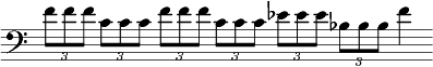 Quoiqu’il en soit, ce motif de notes répétées est construit sur un bête balancement en quarte descendante : fa - do [11], ce qui contribue à l’ultra-polarisation du langage musical que j’évoquais plus haut : notre inconscient musical collectif entend immédiatement un rapport dominante-tonique. Autre balancement, la seconde mineure descendante fa - mib, qui fait elle aussi signe vers une polarisation sur fa — d’une façon encore plus primitive d’ailleurs, puisqu’il n’y a ici même plus de note sensible.