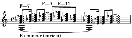 Comme vous pouvez le voir, il est construit sur un accord de fa mineur, enrichi par des tierces multiples : non seulement la septième, mais même la neuvième et la onzième. Cette démarche d’enrichissement des accord, typiquement Jazz à l’origine, va devenir l’un des traits marquants du funk.