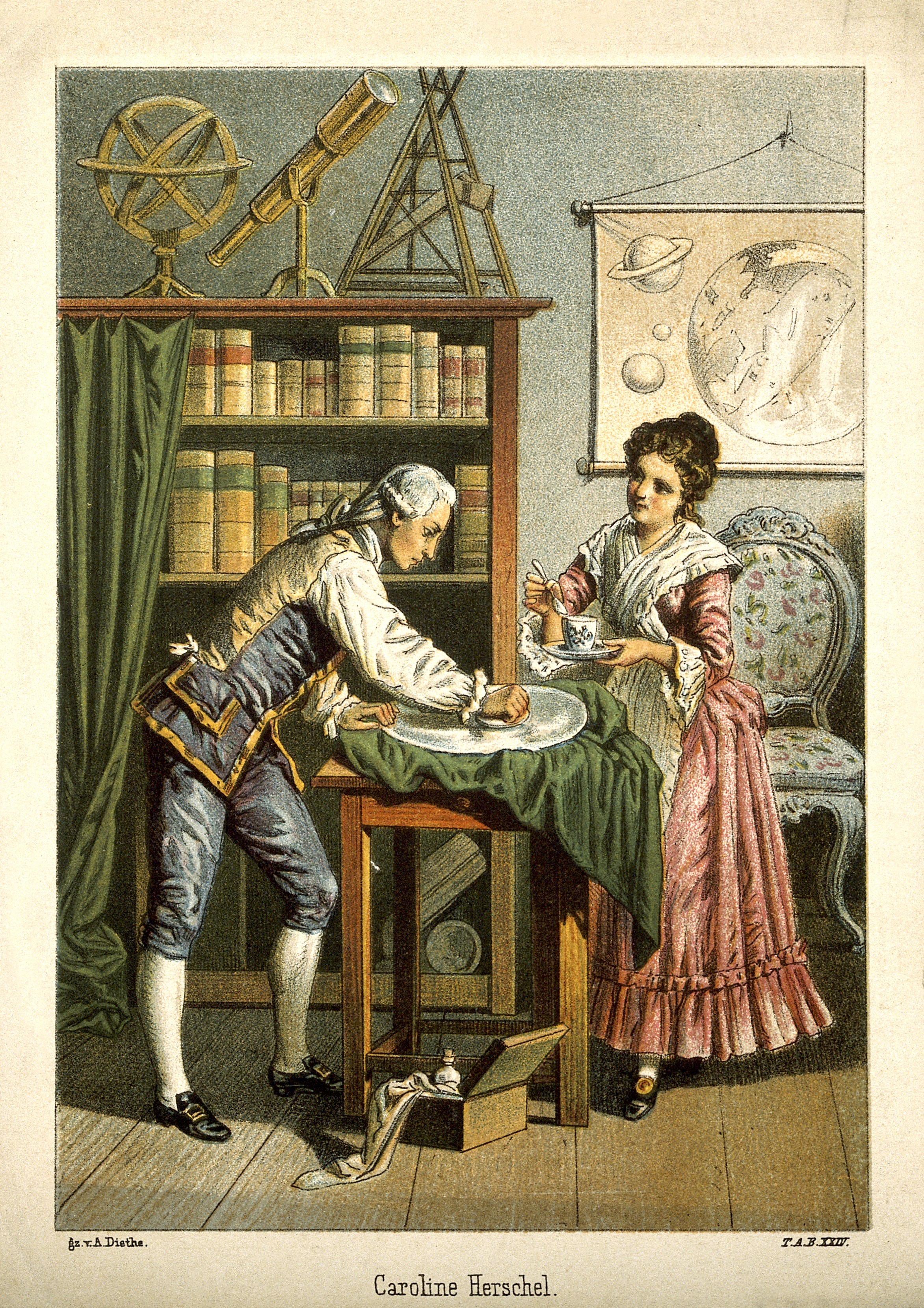 En 1782, Herschel, qui vient d’être invité à rejoindre la Royal Astronomical Society d’Angleterre, prend une décision audacieuse : il fait officiellement ses adieux à la musique, à la scène et à l’enseignement, et ne se consacre désormais plus qu’à la science. Choix qu’il fait, comme à son habitude, entièrement par lui-même et sans consulter personne, mais qui ne sera pourtant pas sans affecter tout son cercle de famille, à commencer par sa sœur Caroline.
